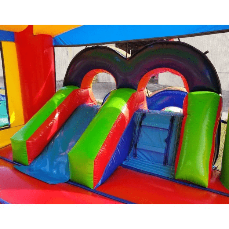 - OCCUPANCY: A maximum of 5-6 kids of equal size at one time for bounce houses, and 1 person at a time for slides is what most inflatable manufacturers recommend.